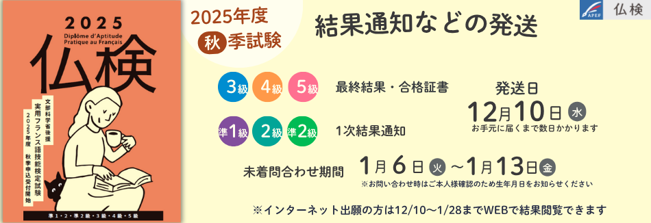 - 2025年度秋季 仏検 インターネット申込受付中!