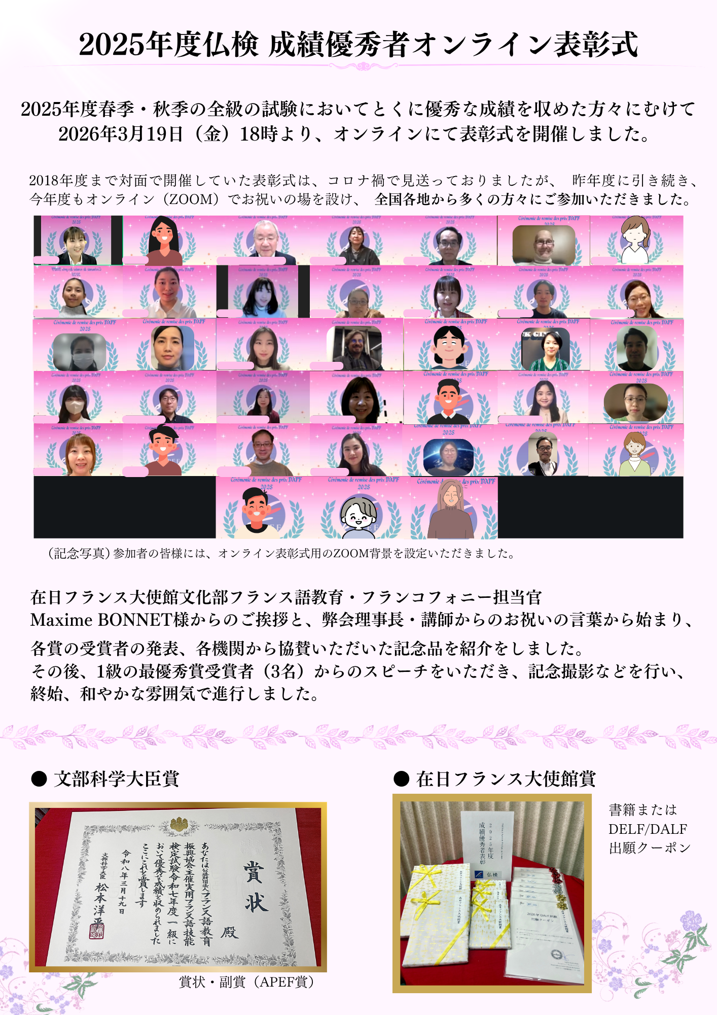 2025年度仏検 成績優秀者オンライン表彰式を開催しました